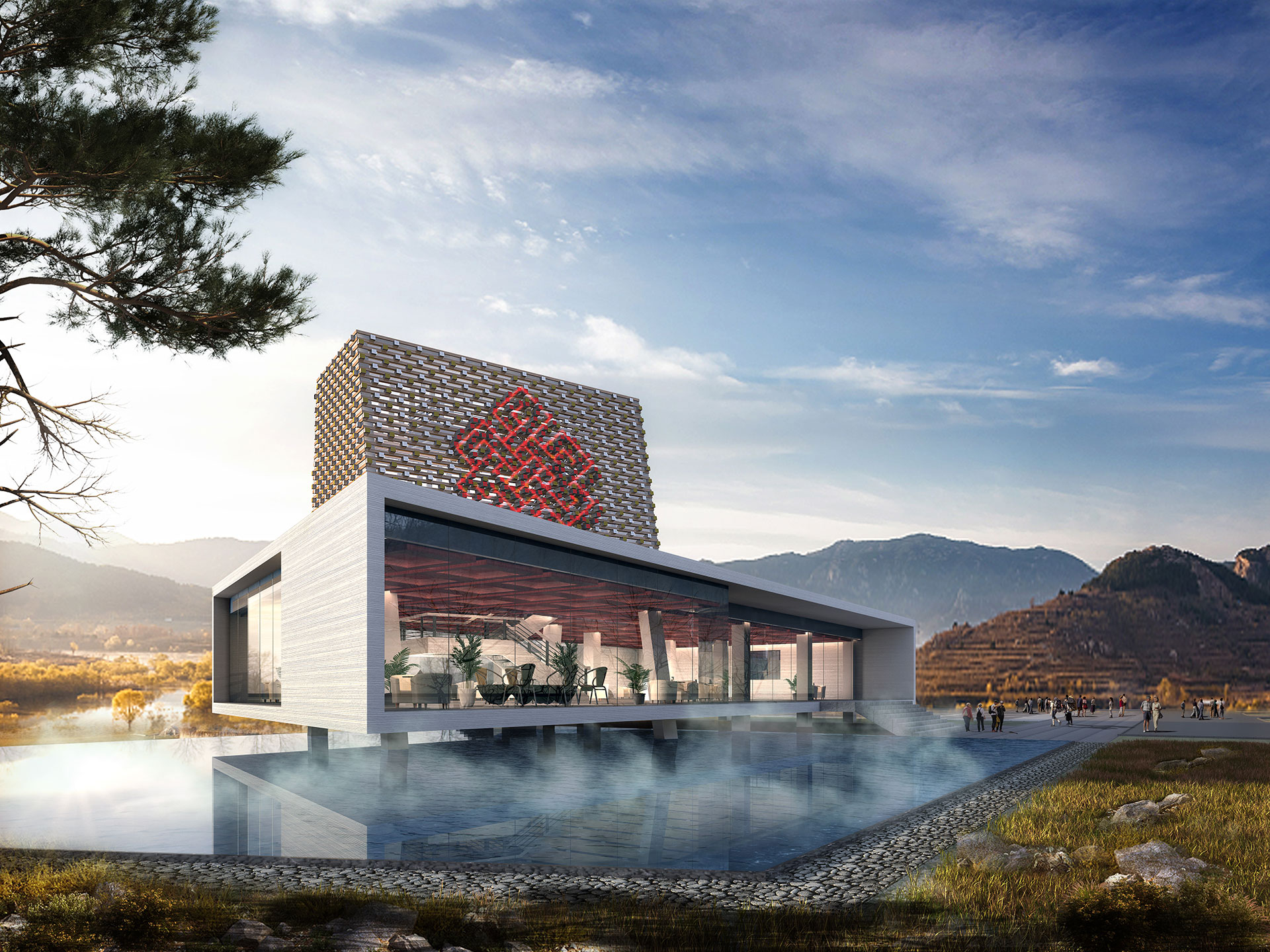 在游客中心的設計中,希望展現卡嘎溫泉中藏藥與溫泉相結合神奇,除了將多余的地熱溫泉水引入景觀中,建筑表皮設計更是希望表達出藏藥藥格的意向,給游客留下健康、養身、休閑的既定印象。