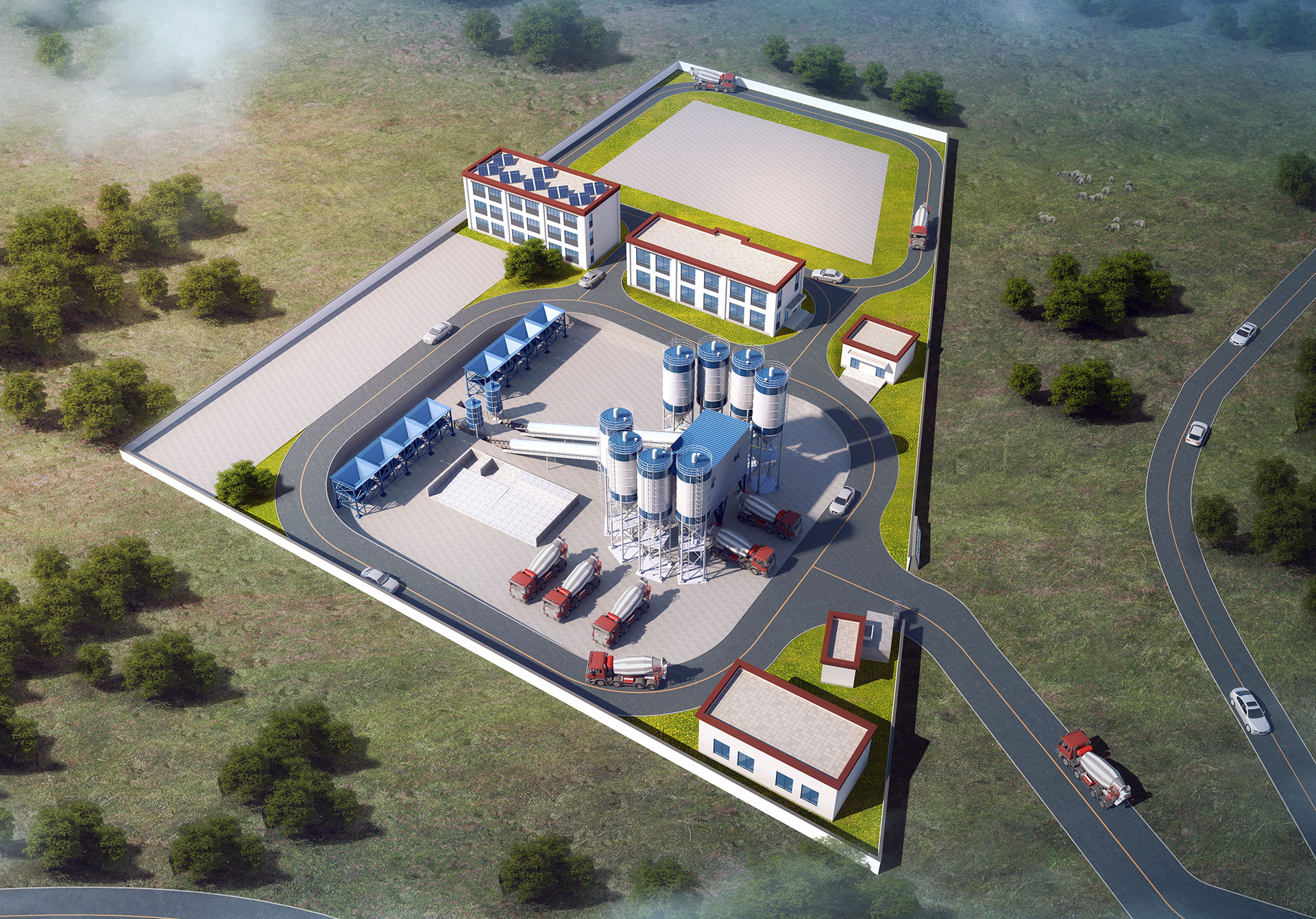 項目包括商混站及其配套功能,分為生產、生活、存放三大區域。生產區采用先進設備和環保技術,生活區提供舒適住宿和娛樂設施,存放區建設大型倉庫和堆場。