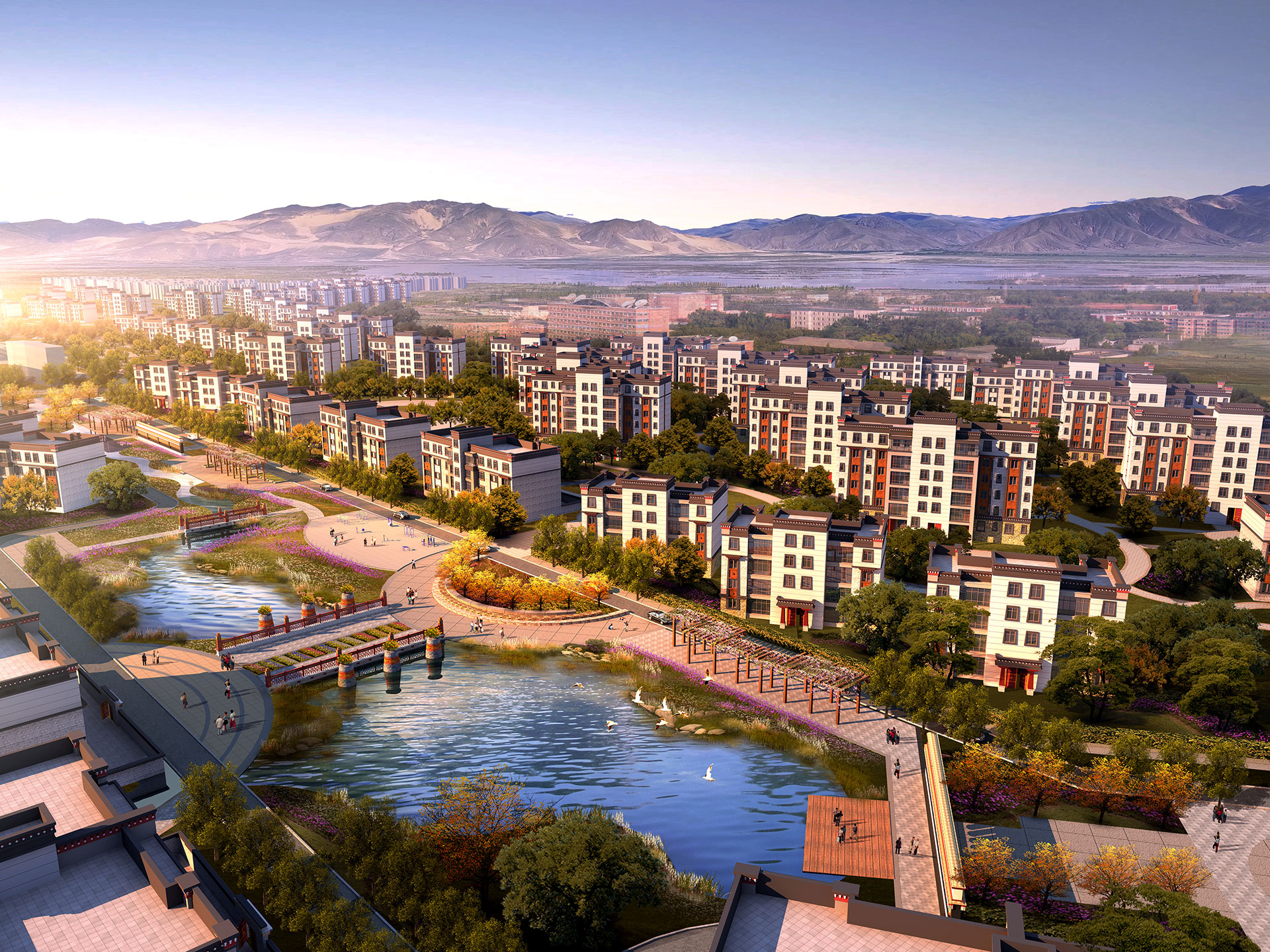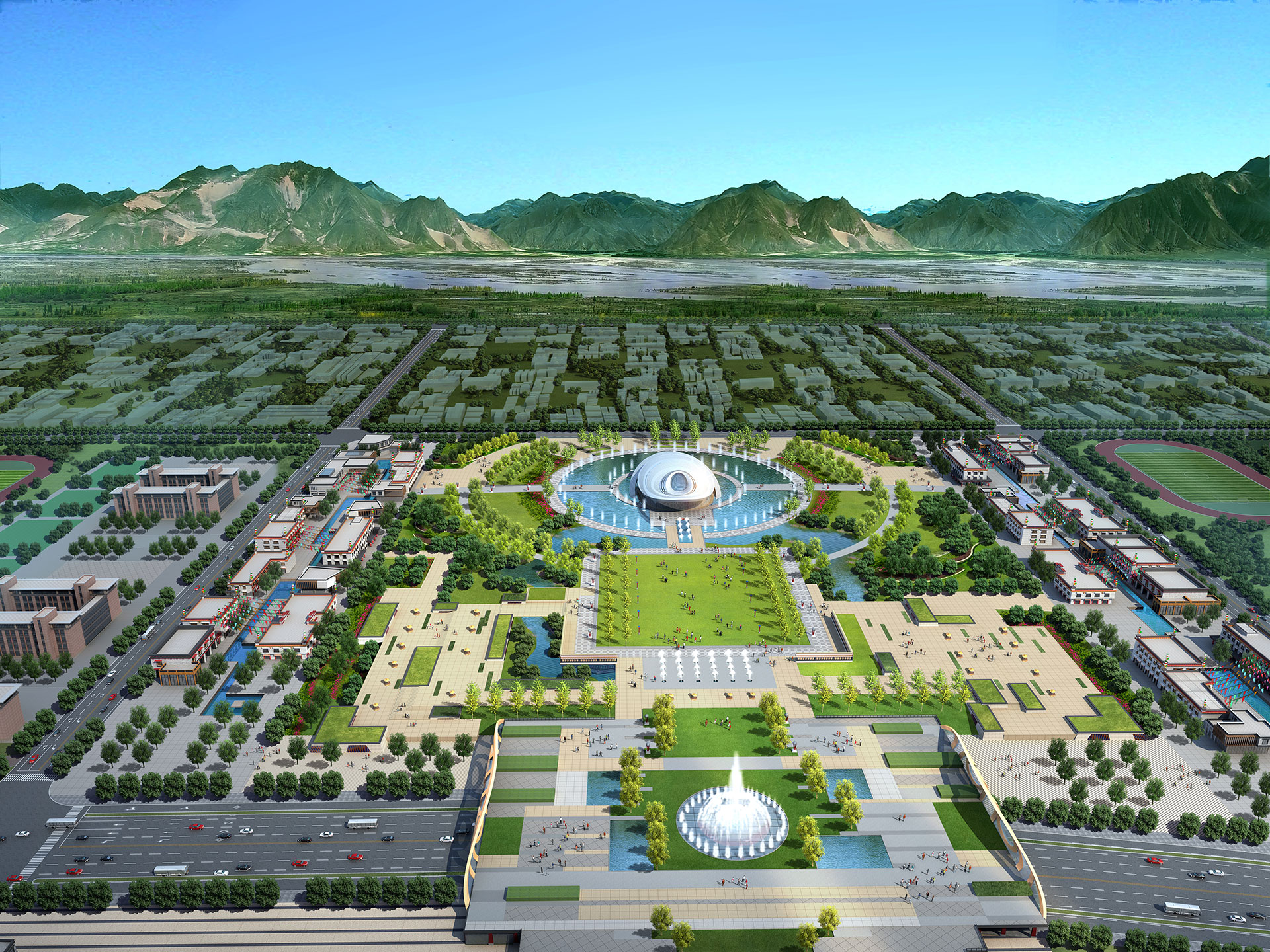 水,是萬物之源,是天地之始,是自然最為珍貴的饋贈。世世代代的藏族人民對水有著天生的崇拜,認(rèn)為湖泊、江河都是神靈化身,因此,他們多稱湖為措,意為“天湖”、“圣湖”日喀則地區(qū)自然資源豐富,眾多湖泊好像一顆顆高原明珠落在日喀則這一純潔的玉盤之上,不禁讓人想起詩句“大珠小珠落玉盤”。 帶著這份對自然的崇敬,我們將項(xiàng)目用地化作玉碗,這玉碗中盛滿了星羅棋布的似明珠一樣的水系、綠地、廣場。并且用日喀則地區(qū)四大湖泊命名場地內(nèi)四個居住區(qū)組團(tuán),具有美好的意義。