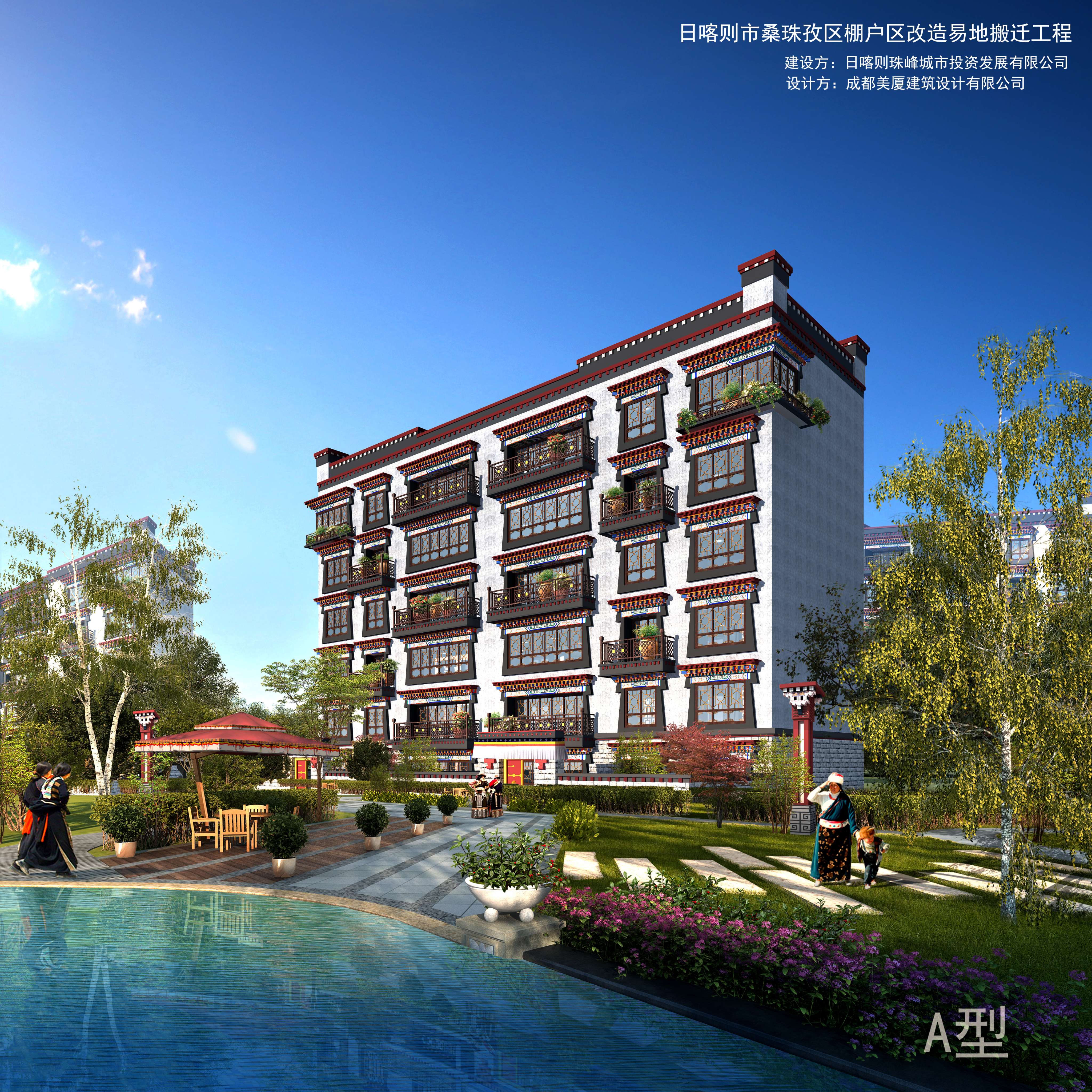 建筑外觀設(shè)計(jì)上延續(xù)宗山而下的后藏文化,將濃郁經(jīng)典的后藏風(fēng)味融入多層住宅設(shè)計(jì),以花臺豐富點(diǎn)綴立面,響應(yīng)藏區(qū)人民熱愛生活的文化特色。