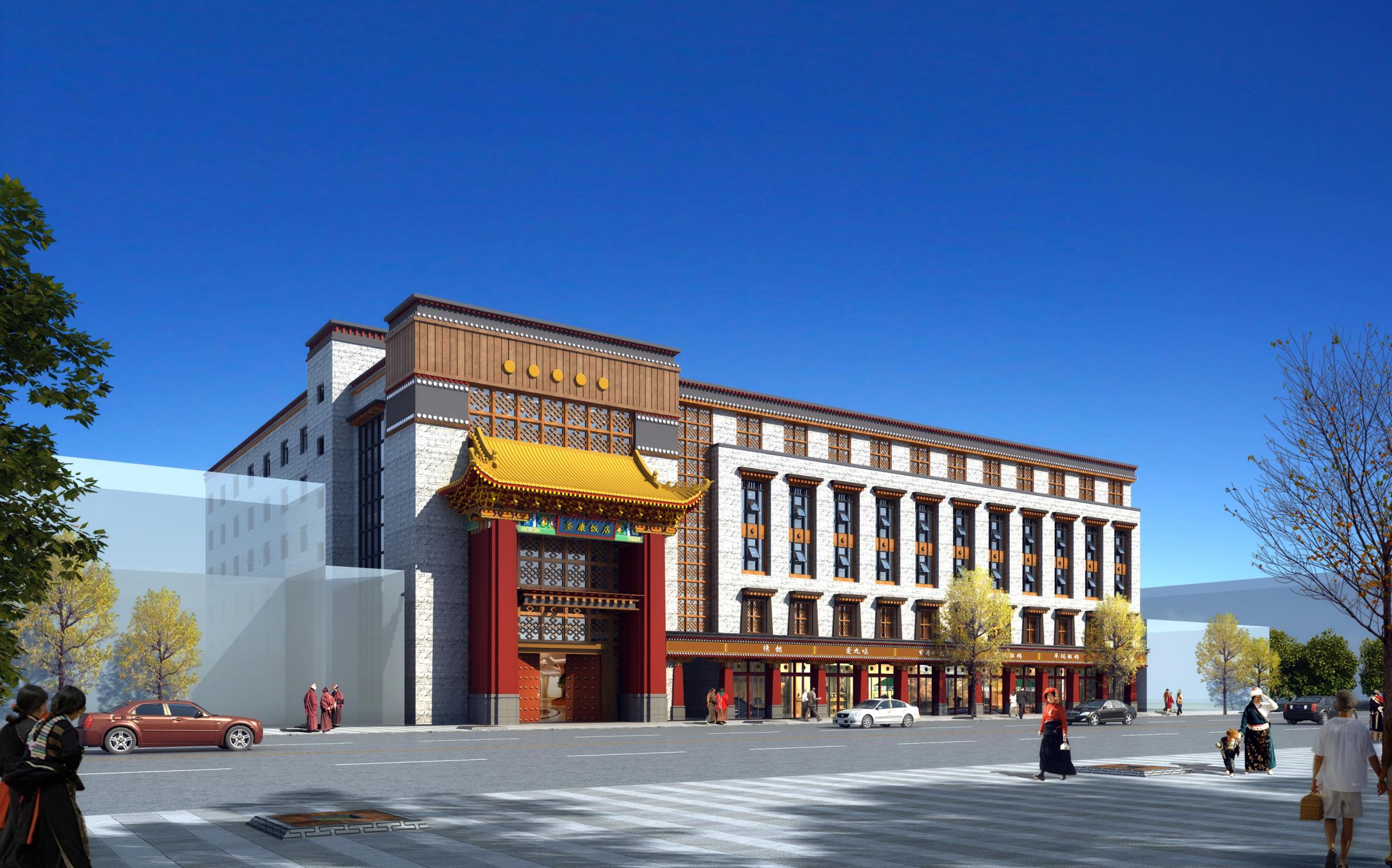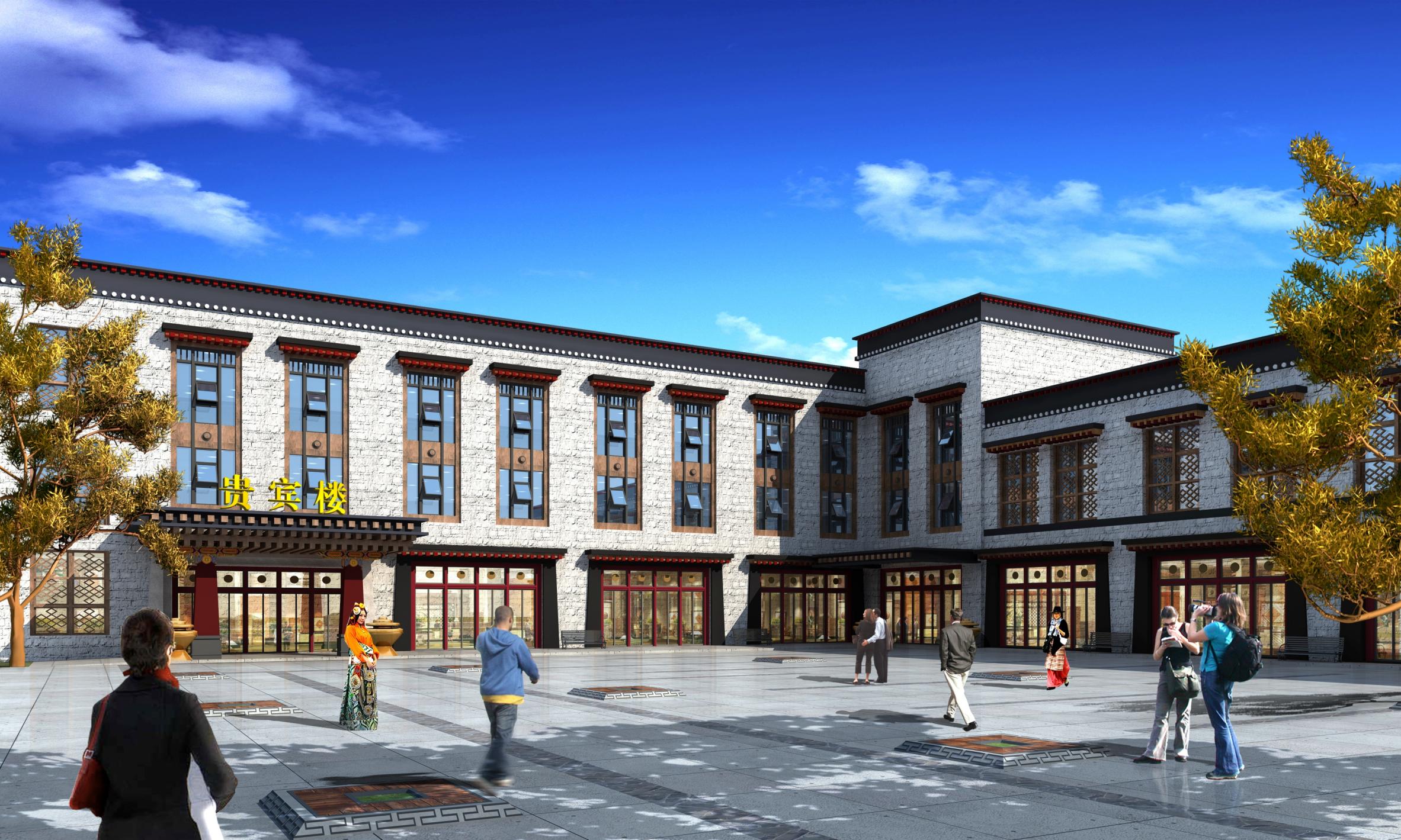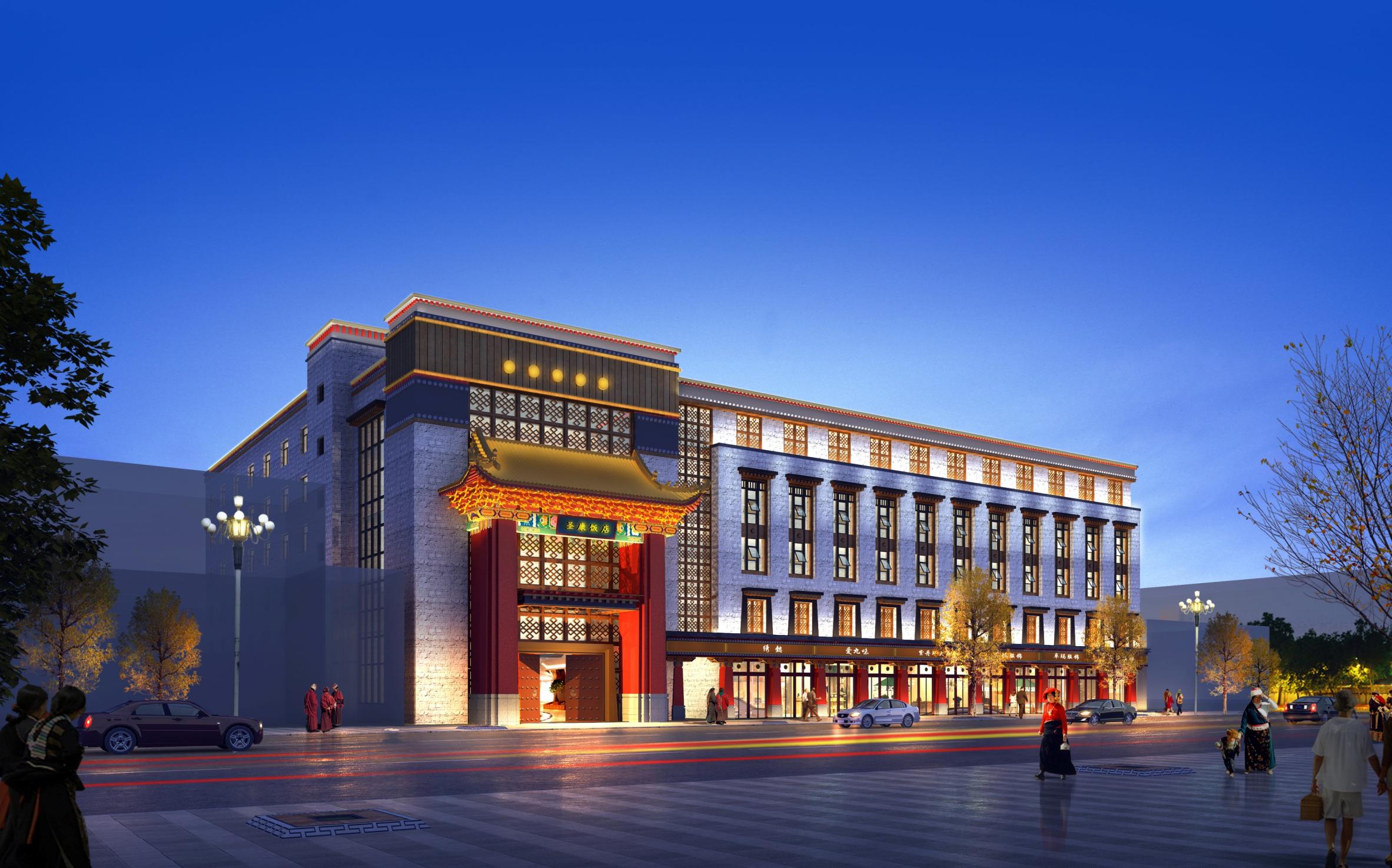 本項目外觀設計重點在于重新梳理立面,創造記憶點。在酒店入口、雨棚、沿街界面等重要立面引入傳統藏式建筑的元素,重塑藏式建筑經典。在外立面材質上著重展現當地特有的建筑材料。以白色為主基調的外立面,點綴藏紅,原木色等裝飾色彩,體現原滋原味的藏式風格。